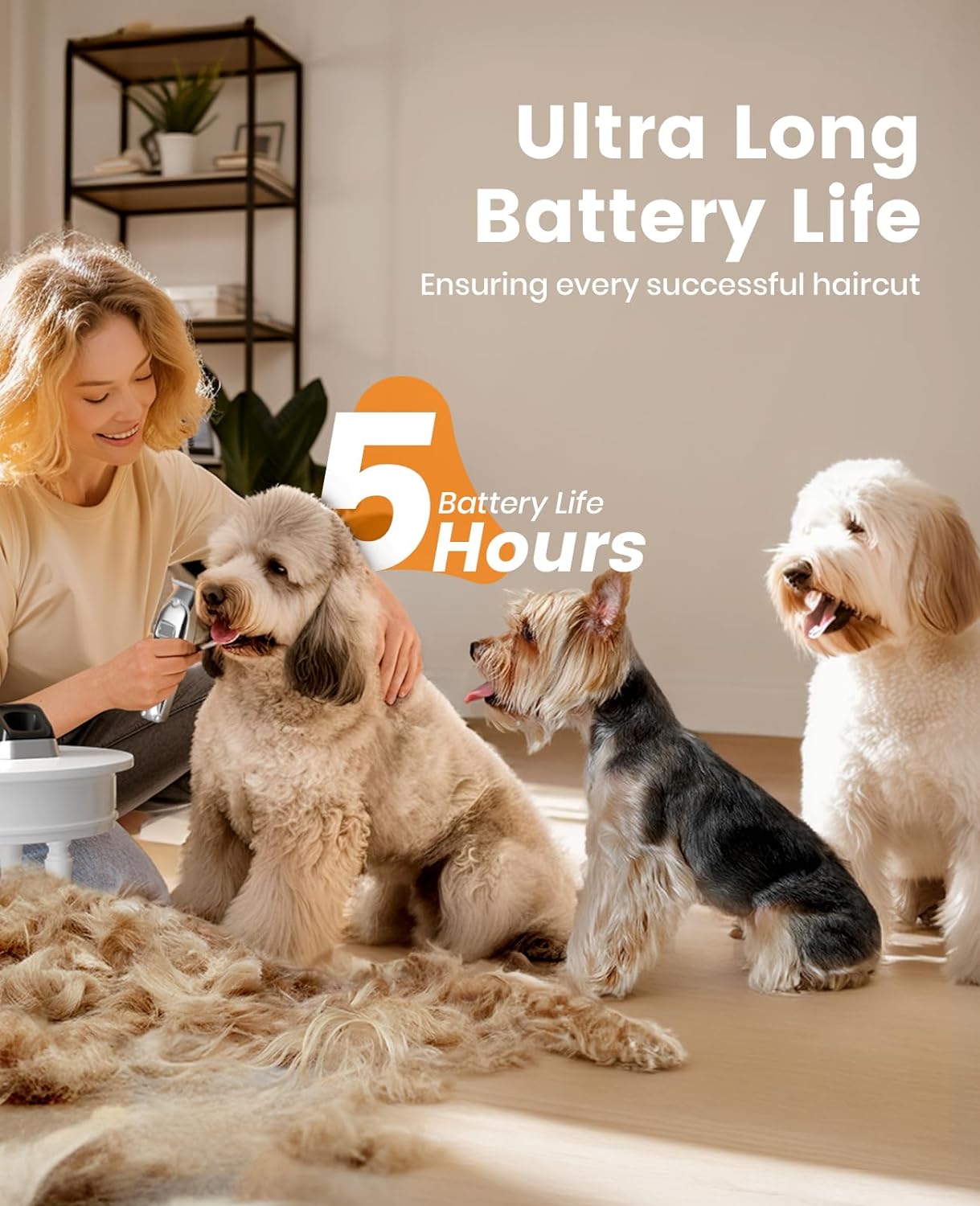 • Cordless dog clippers with precision metal blades