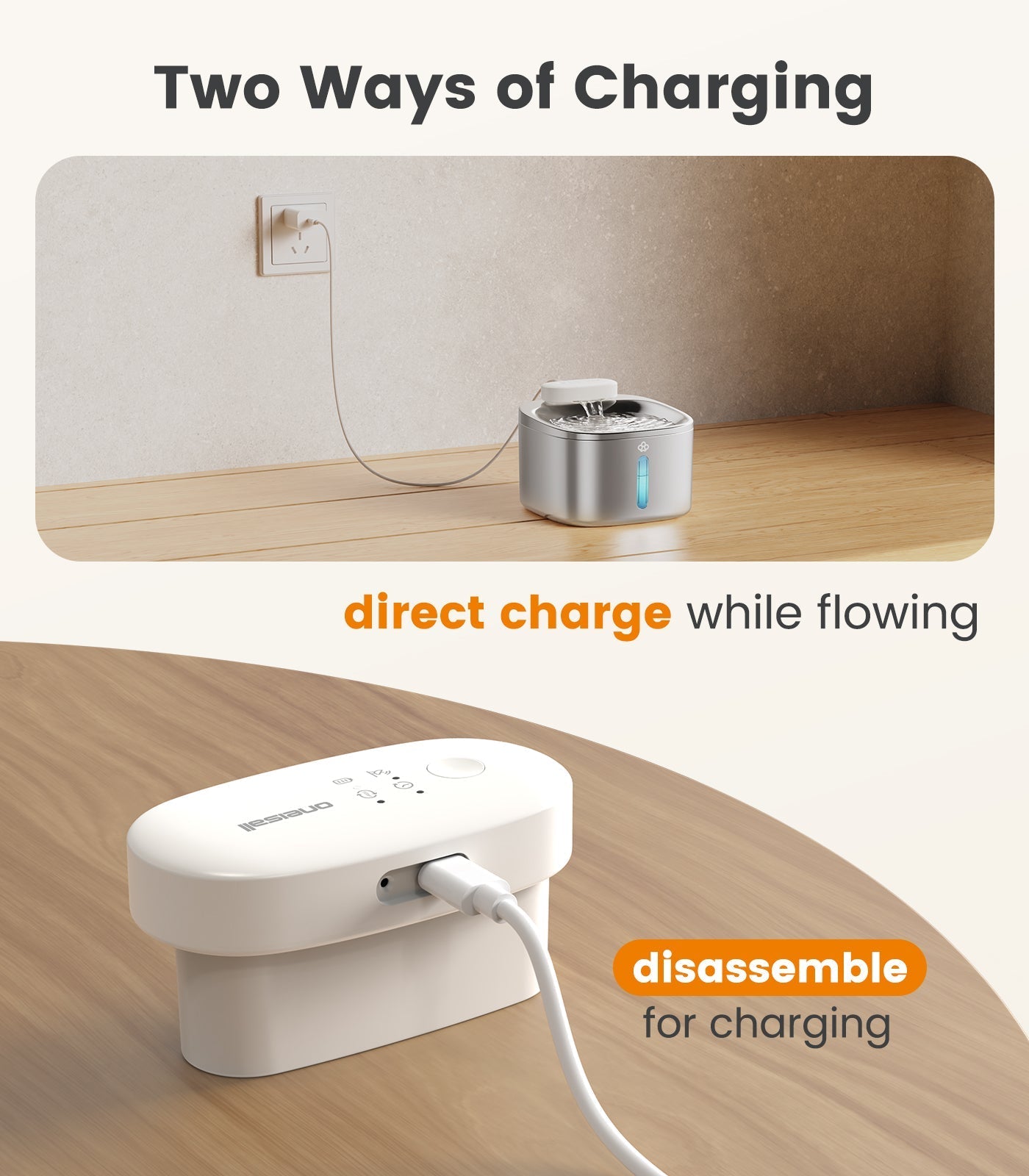 Oneisall 3.5L Cordless Pet Water Fountain Battery Module and Control Panel Replacement