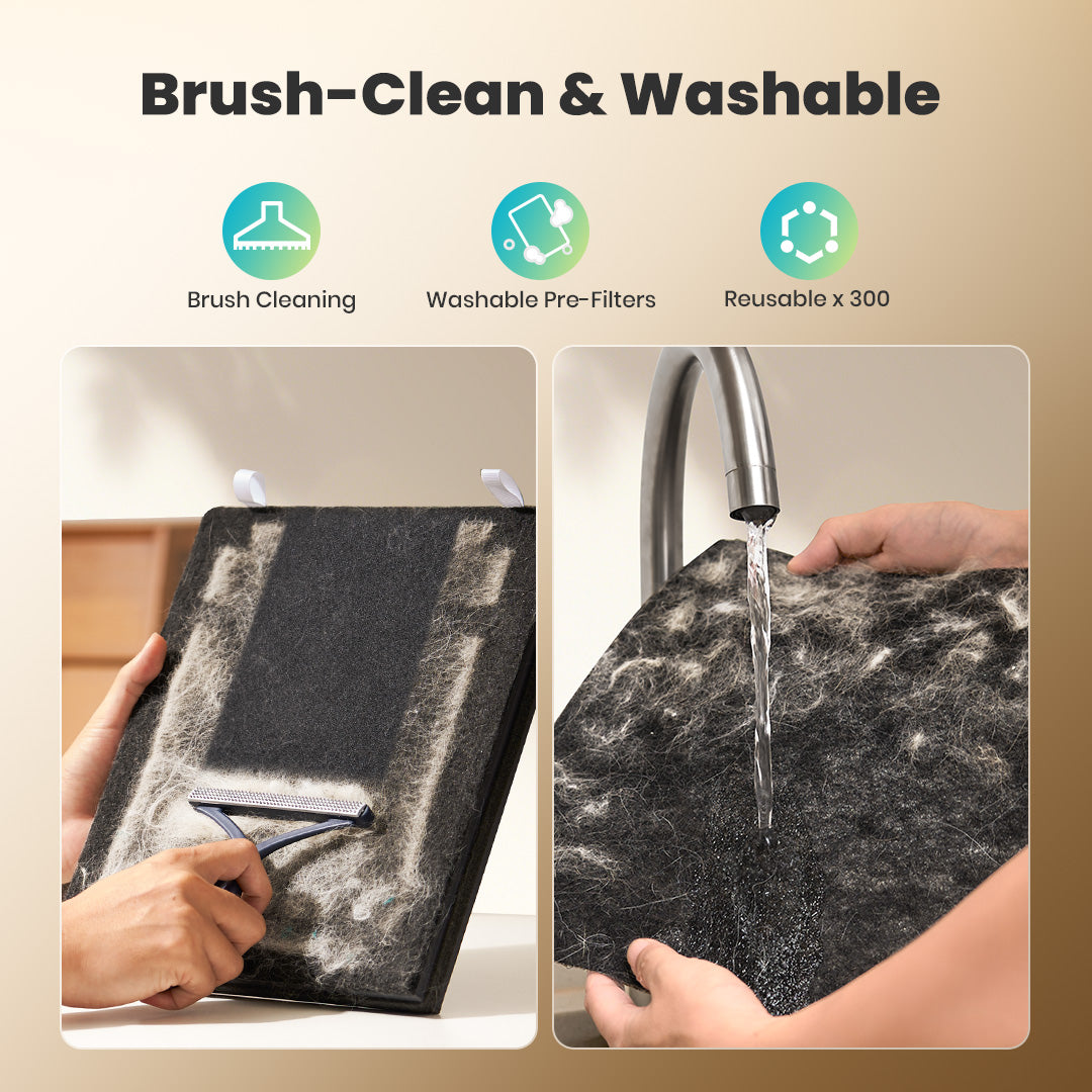 • H13 HEPA and dual carbon filters remove odors and tiny particles fast.
